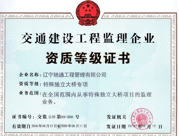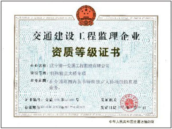 特大橋資質(zhì)正本