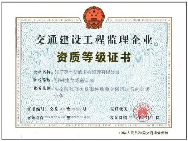 特殊隧道資質(zhì)正本