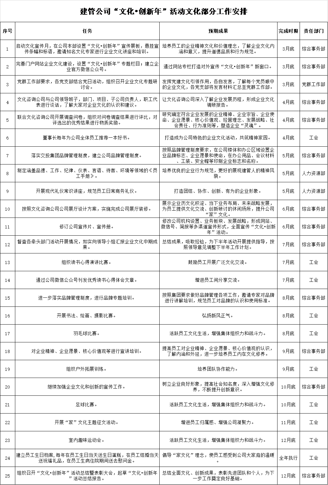 建管公司“文化?創(chuàng)新年”活動(dòng)文化部分工作安排